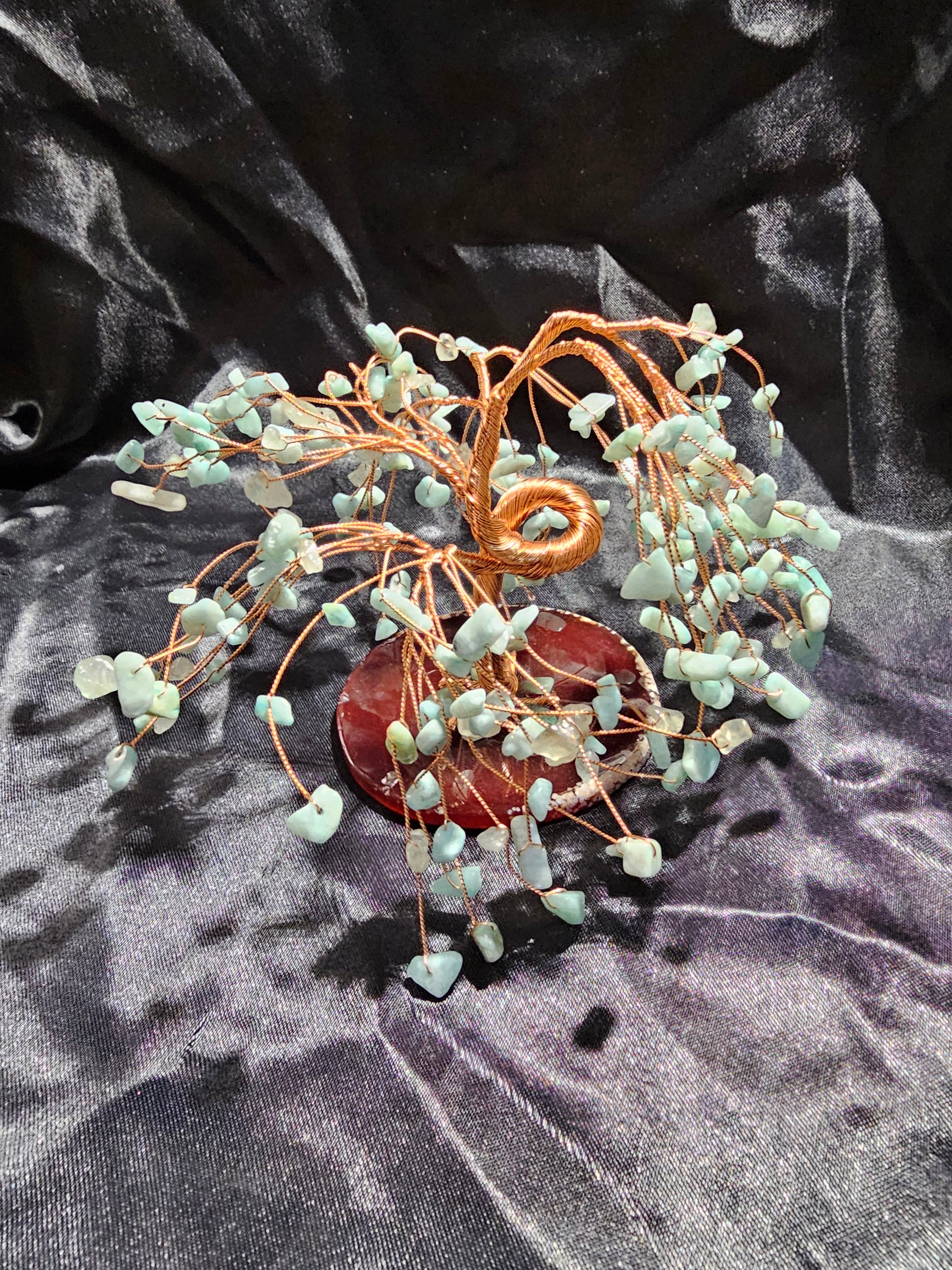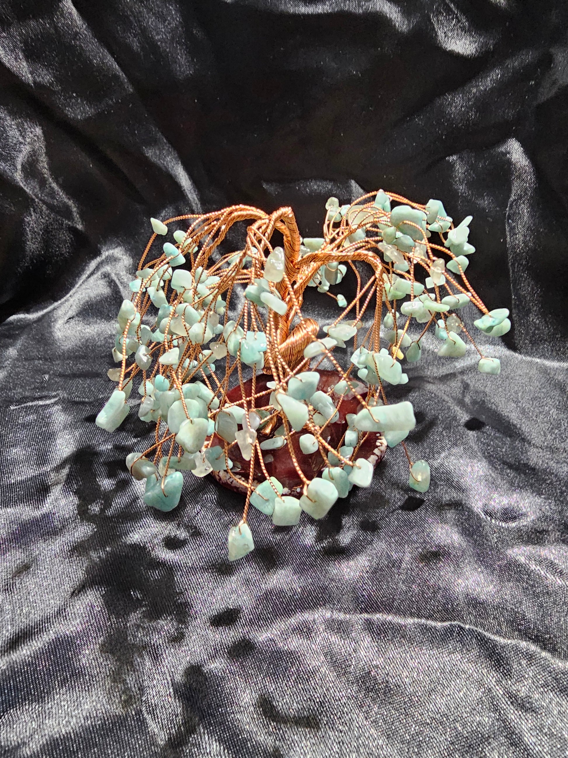Amazonite Crystal Willow Tree w/Copper Tree Trunk and Branches. Along with Green Aventurine at Roots