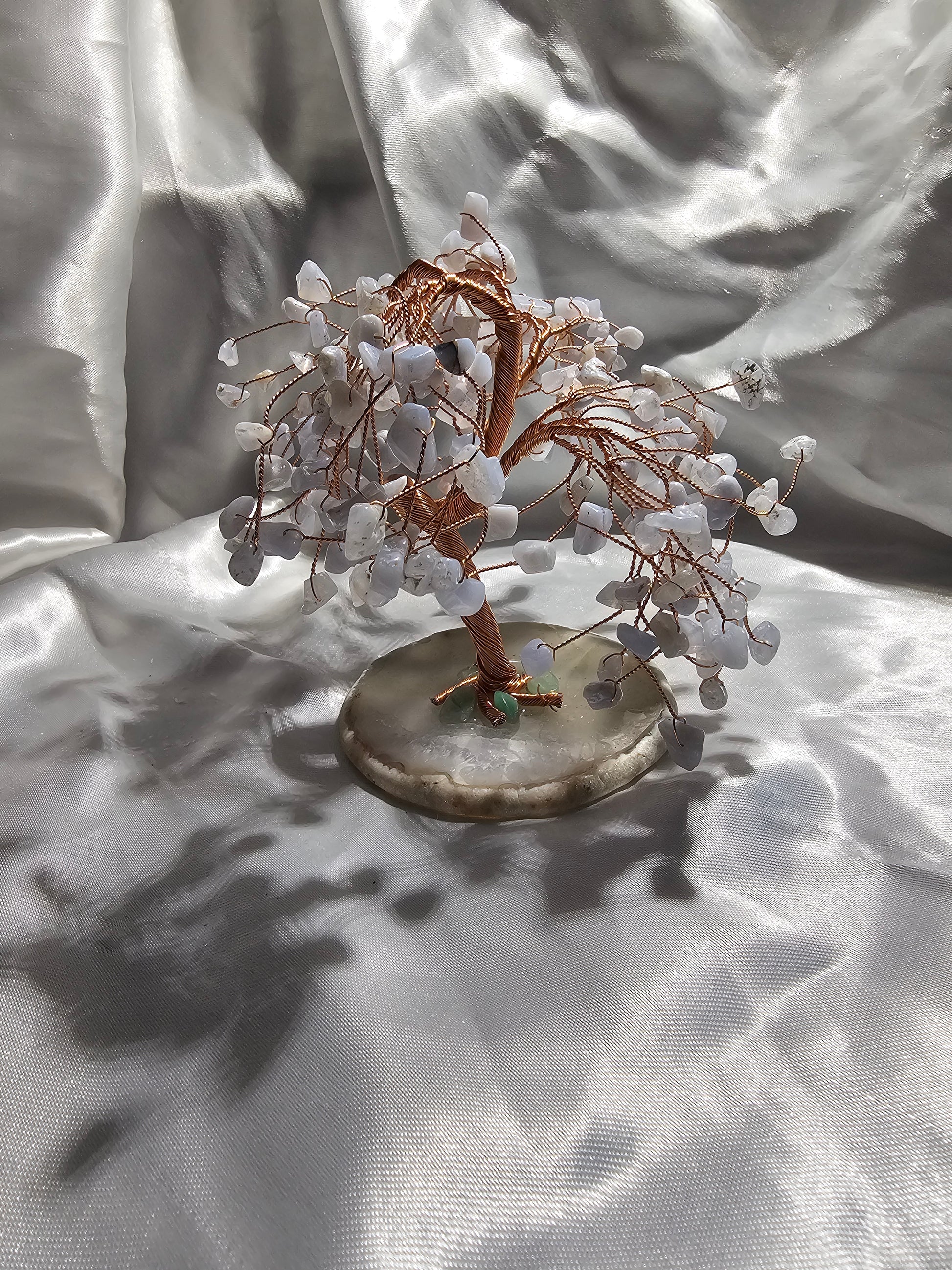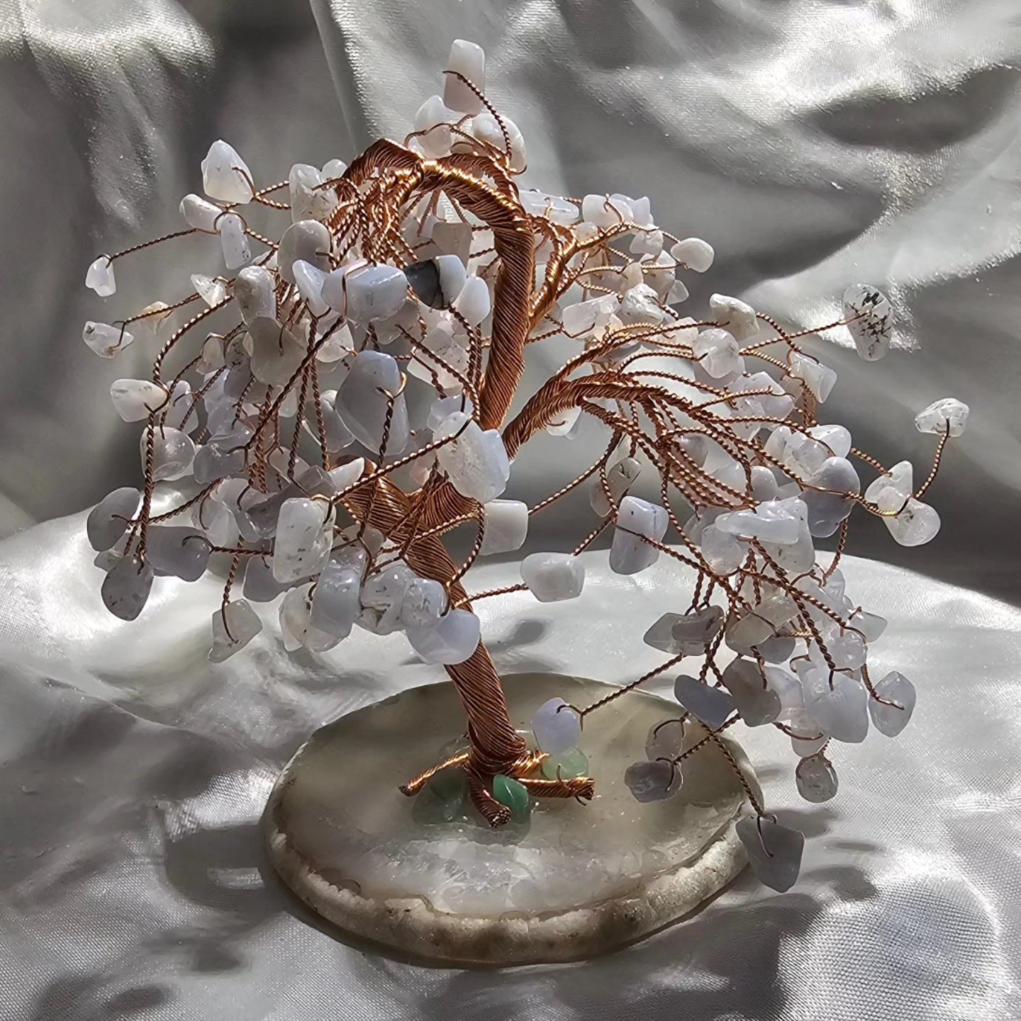Blue Lace Agate Crystal Willow Tree w/Copper Tree Trunk and Branches. Along with Green Aventurine at Roots