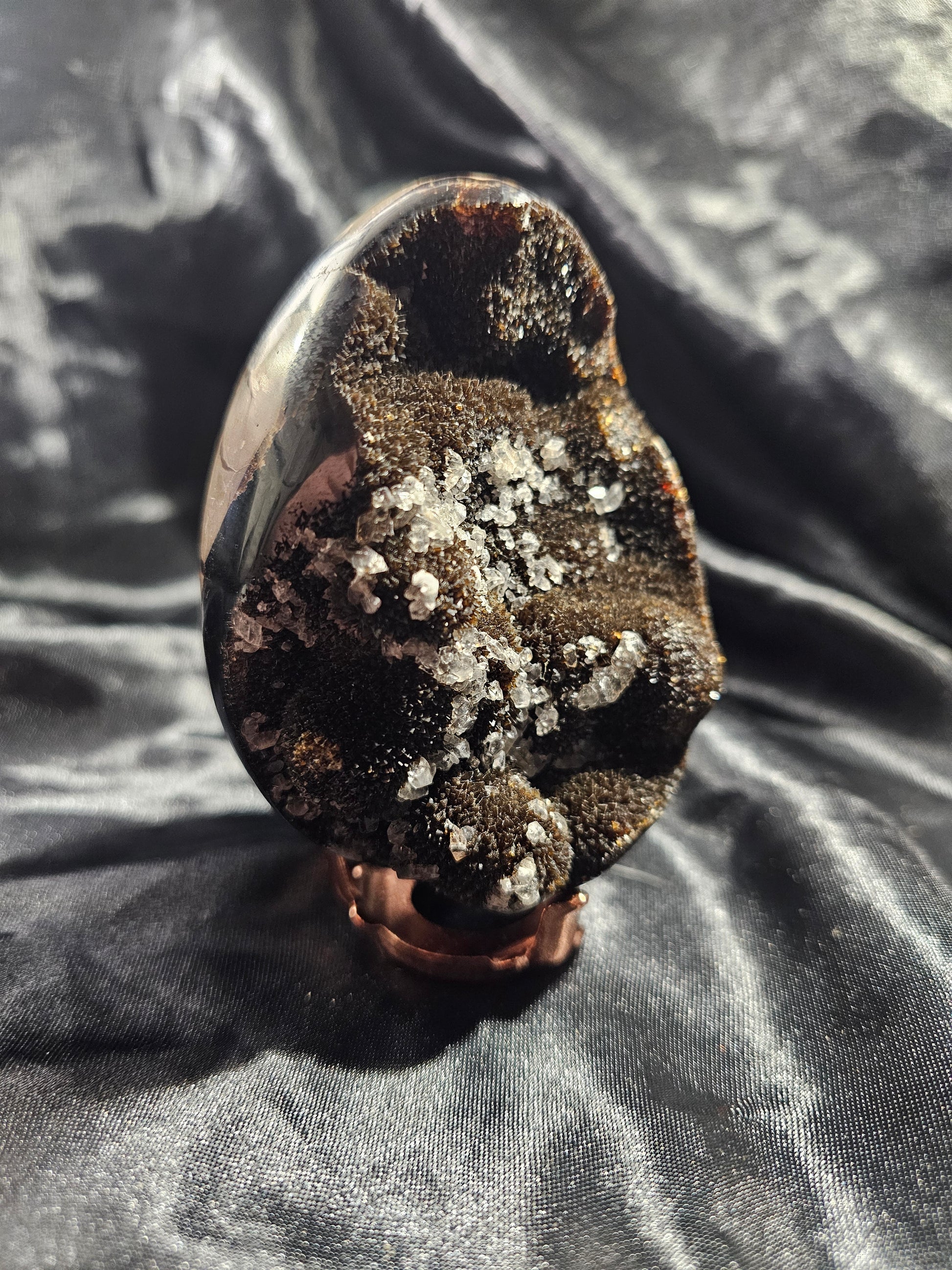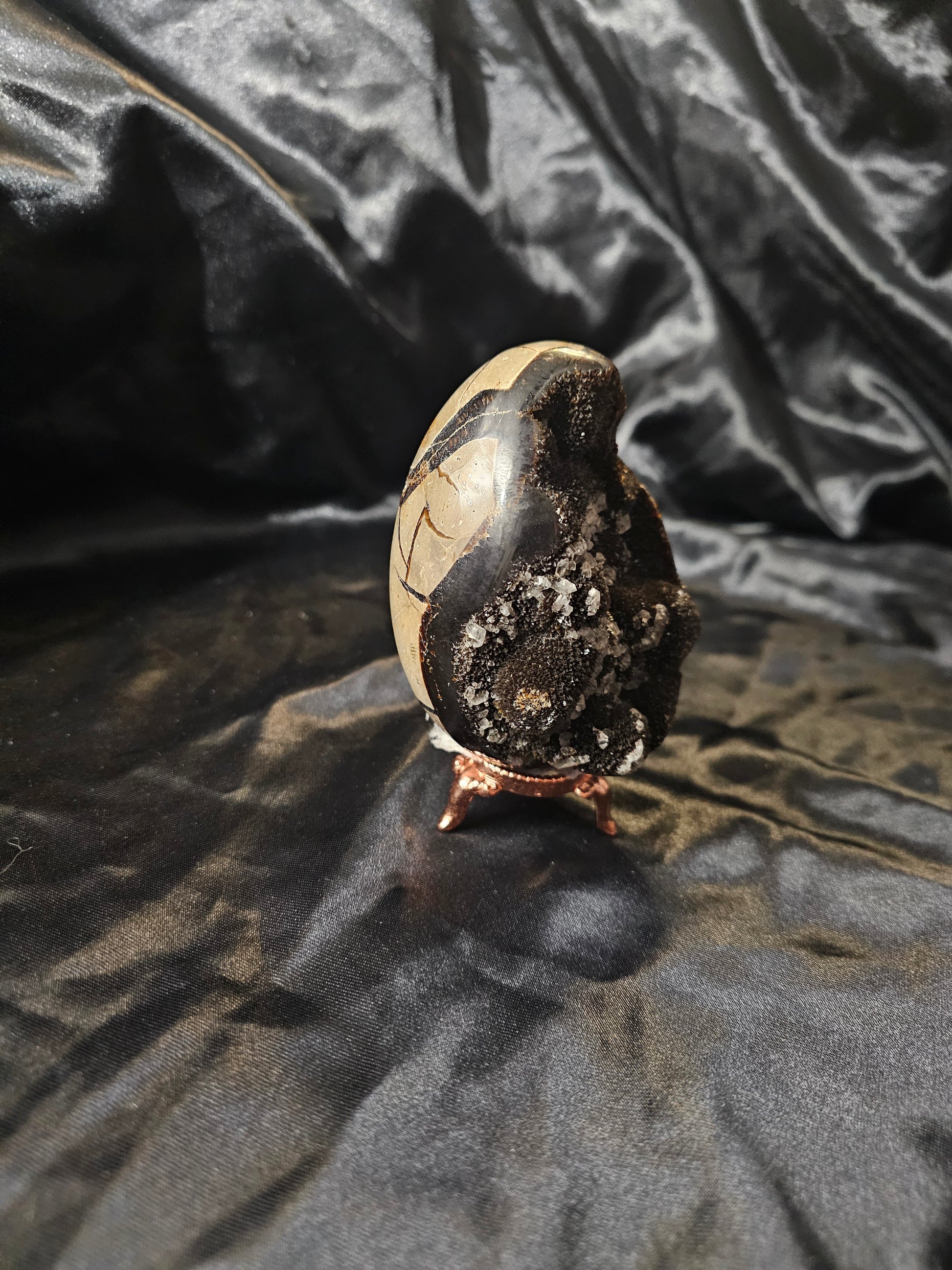 The Septarian Nodule is known as the “speaking stone”, helping to provide the wearer with improved communication skills while strengthening their spirit. This powerful grounding stone is also great for amplifying intentions of self-healing and releasing stress. Have a Septarian Nodule with you the next time you have to speak in public. You may overcome feelings and fears based on social anxiety. Septarian inspires confidence in your communication skills and emotional flexibility. Grounds and heals. Transforms energy into strength.
