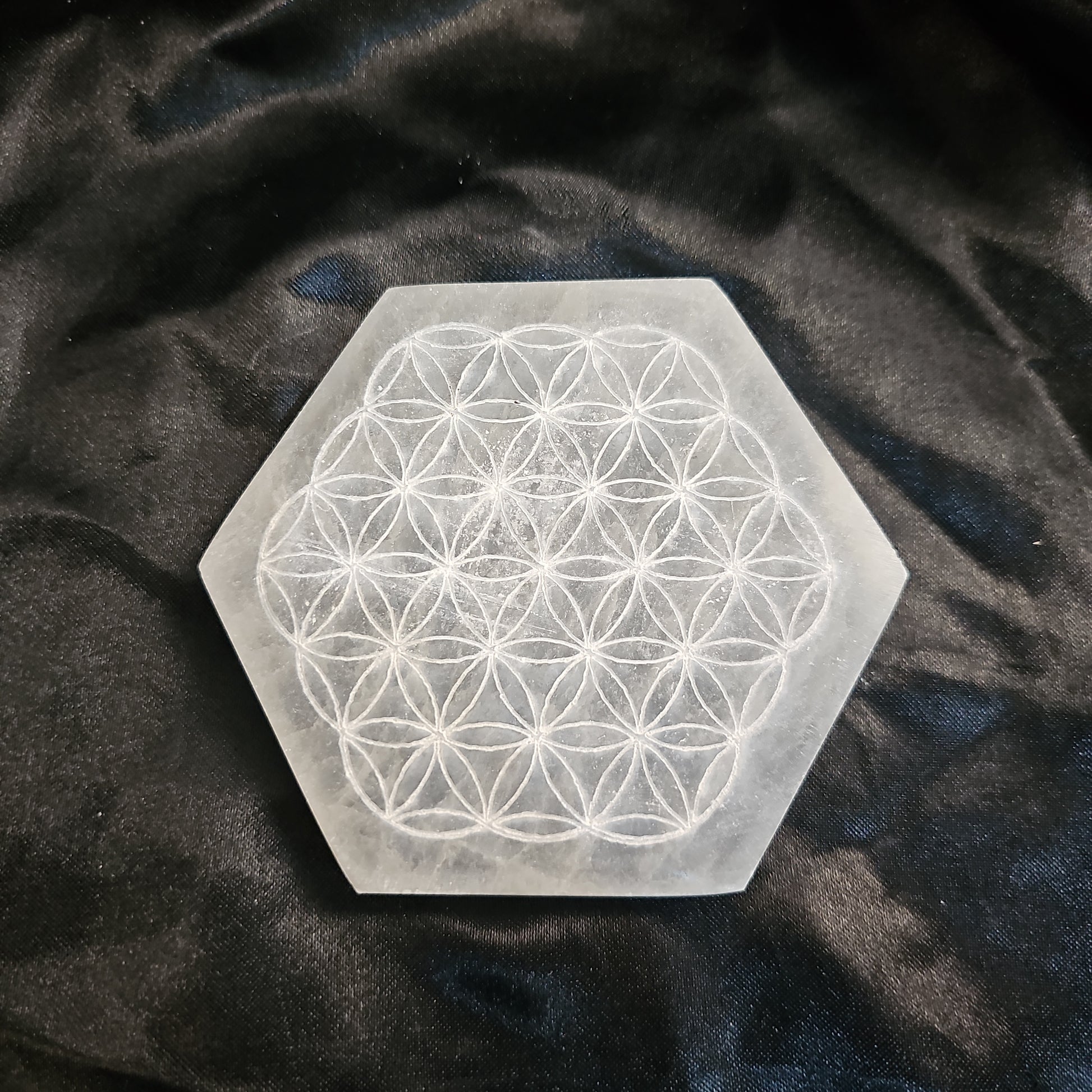 Flower of Life - Hexagon - 4" Selenite Charging Plate