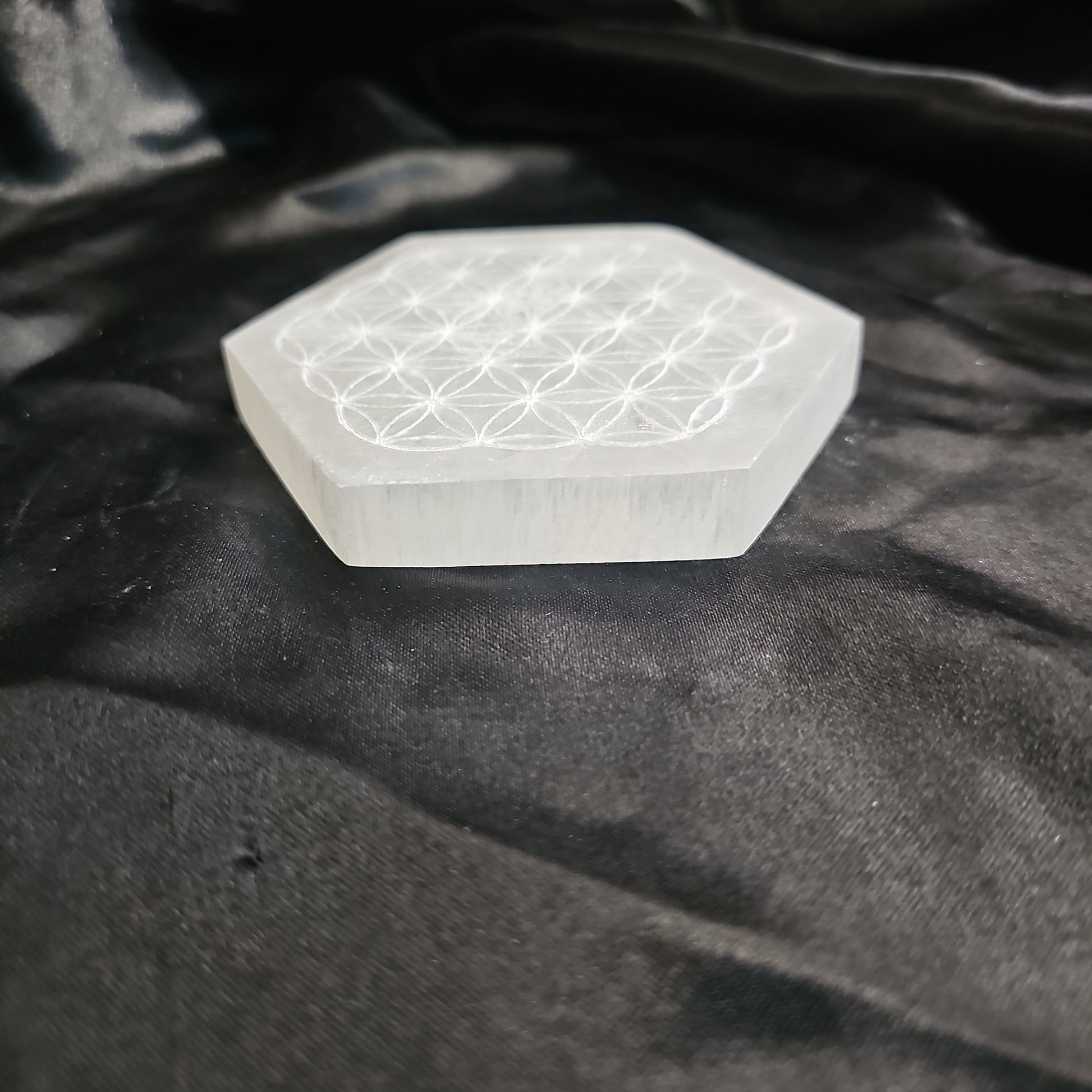 Flower of Life - Hexagon - 5 1/2" Selenite Charging Plate