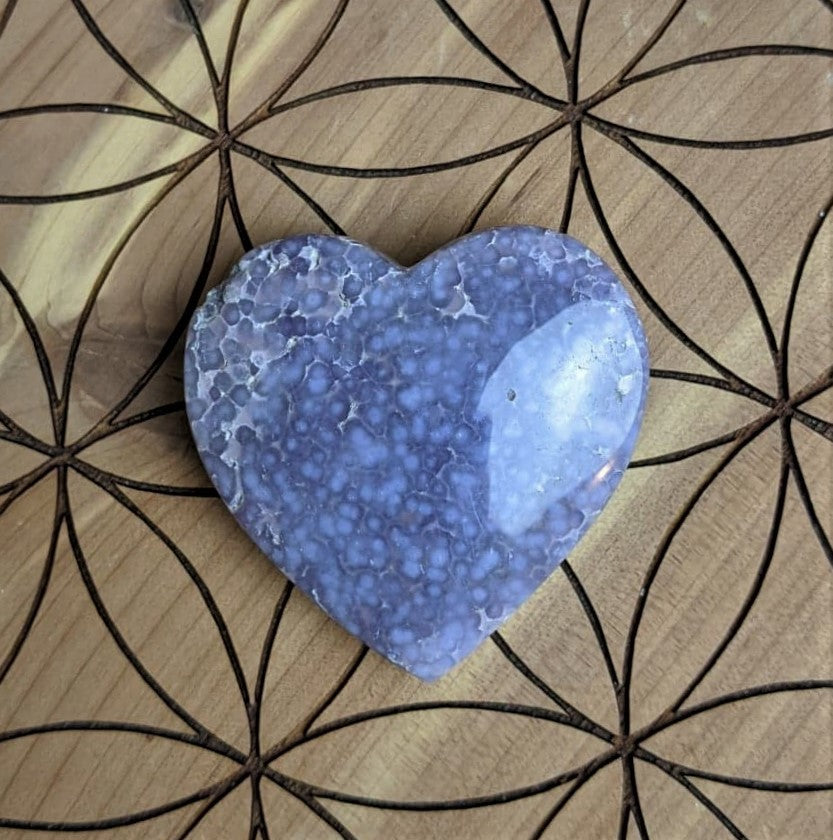 Each Grape Agate Crystal Heart measures approximately 1.75in x 1.5in x 0.5in.