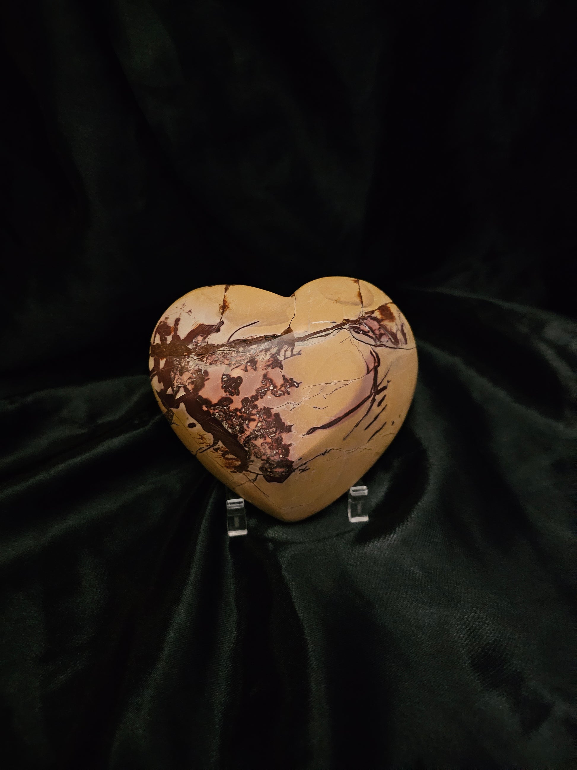 Shaped into a gentle heart, this bowl is perfect for holding small trinkets, crystals, or jewelry. It can also serve as a striking decorative piece on its own. The combination of the heart shape and Mookaite's nurturing energy makes it an ideal addition to any space, promoting a sense of peace and centeredness.