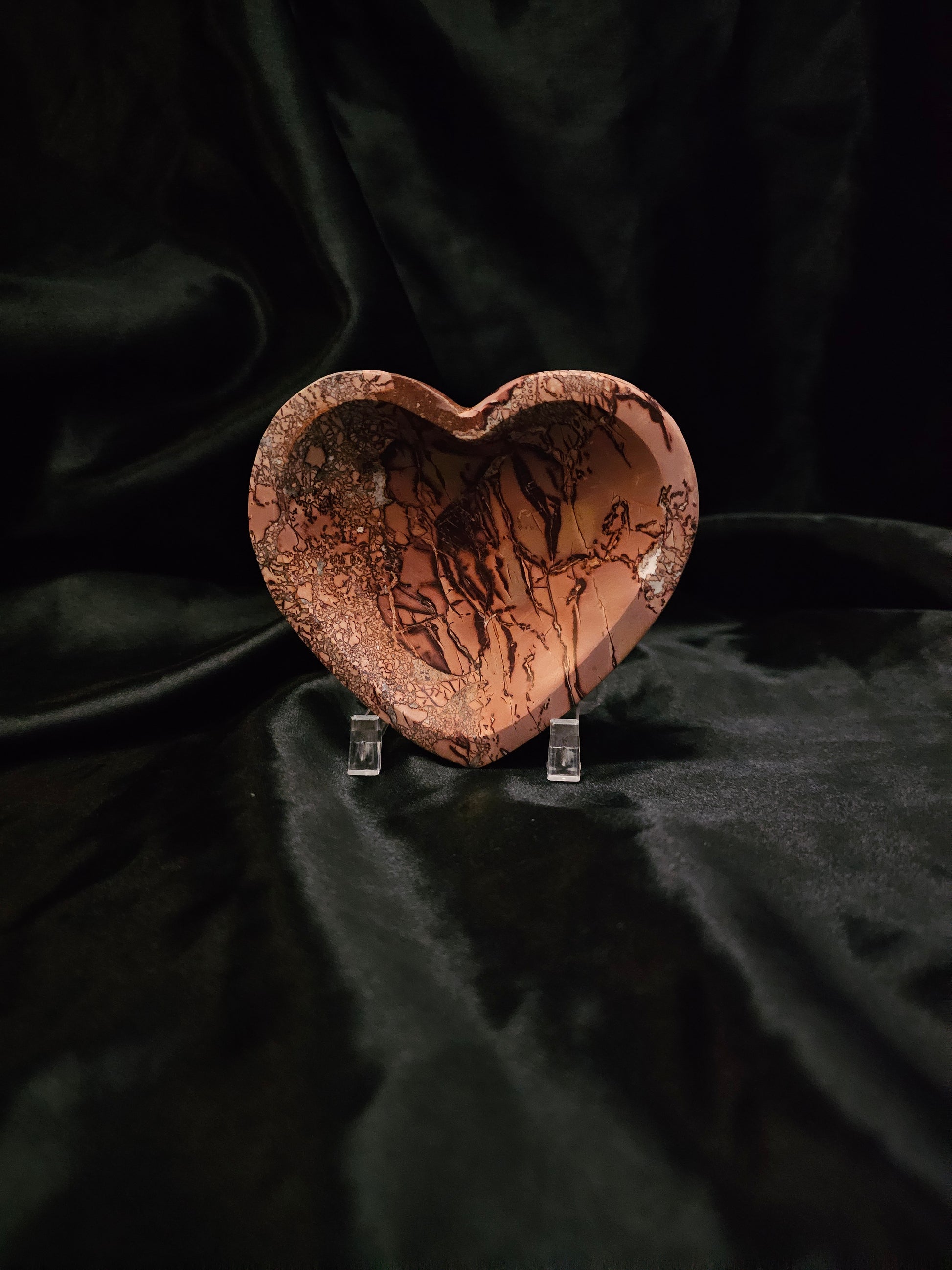 Shaped into a gentle heart, this bowl is perfect for holding small trinkets, crystals, or jewelry. It can also serve as a striking decorative piece on its own. The combination of the heart shape and Mookaite's nurturing energy makes it an ideal addition to any space, promoting a sense of peace and centeredness.