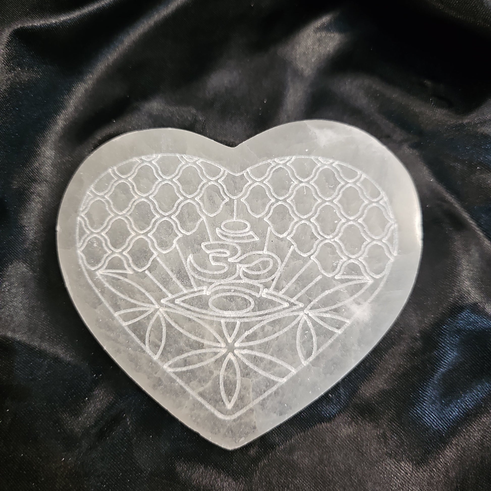 OM Symbol Heart - 5 1/2" Selenite Charging Plate