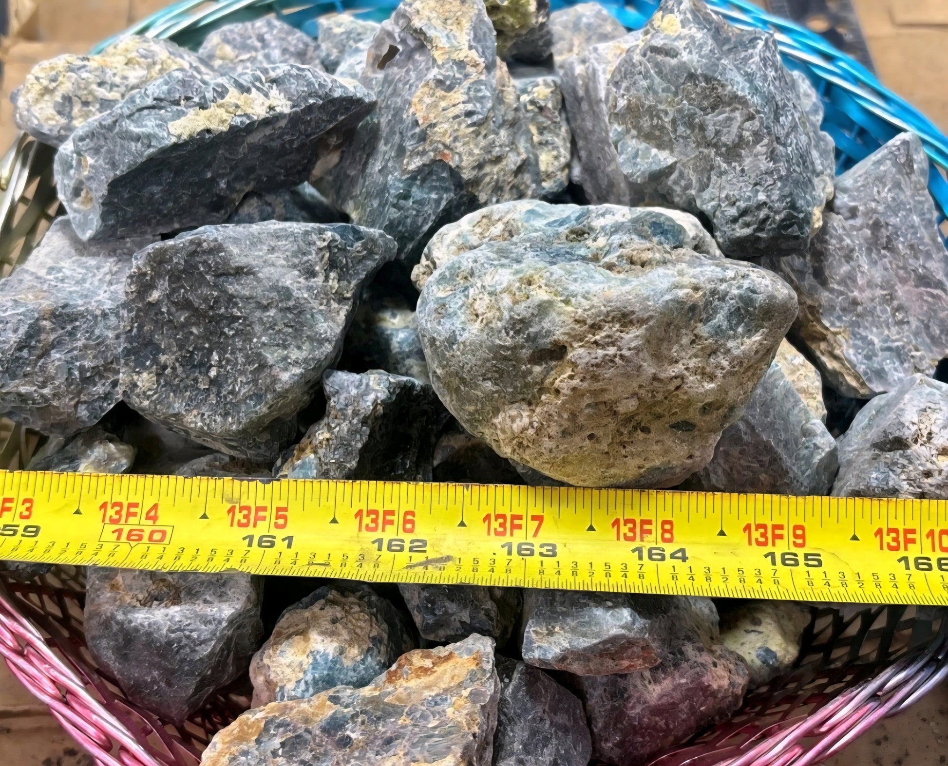 This product is one pound of top grade, handpicked Blue Apatite Rough Rock. It is suitable for lapidary uses, specifically for cabbing.