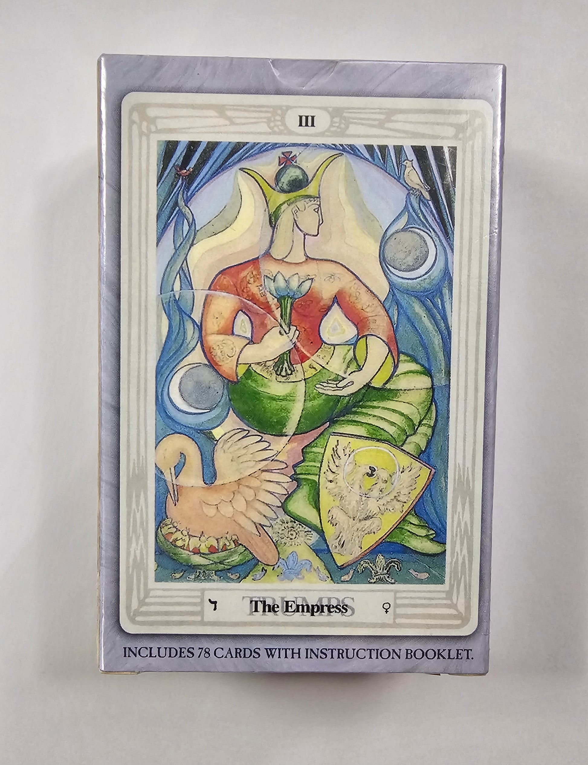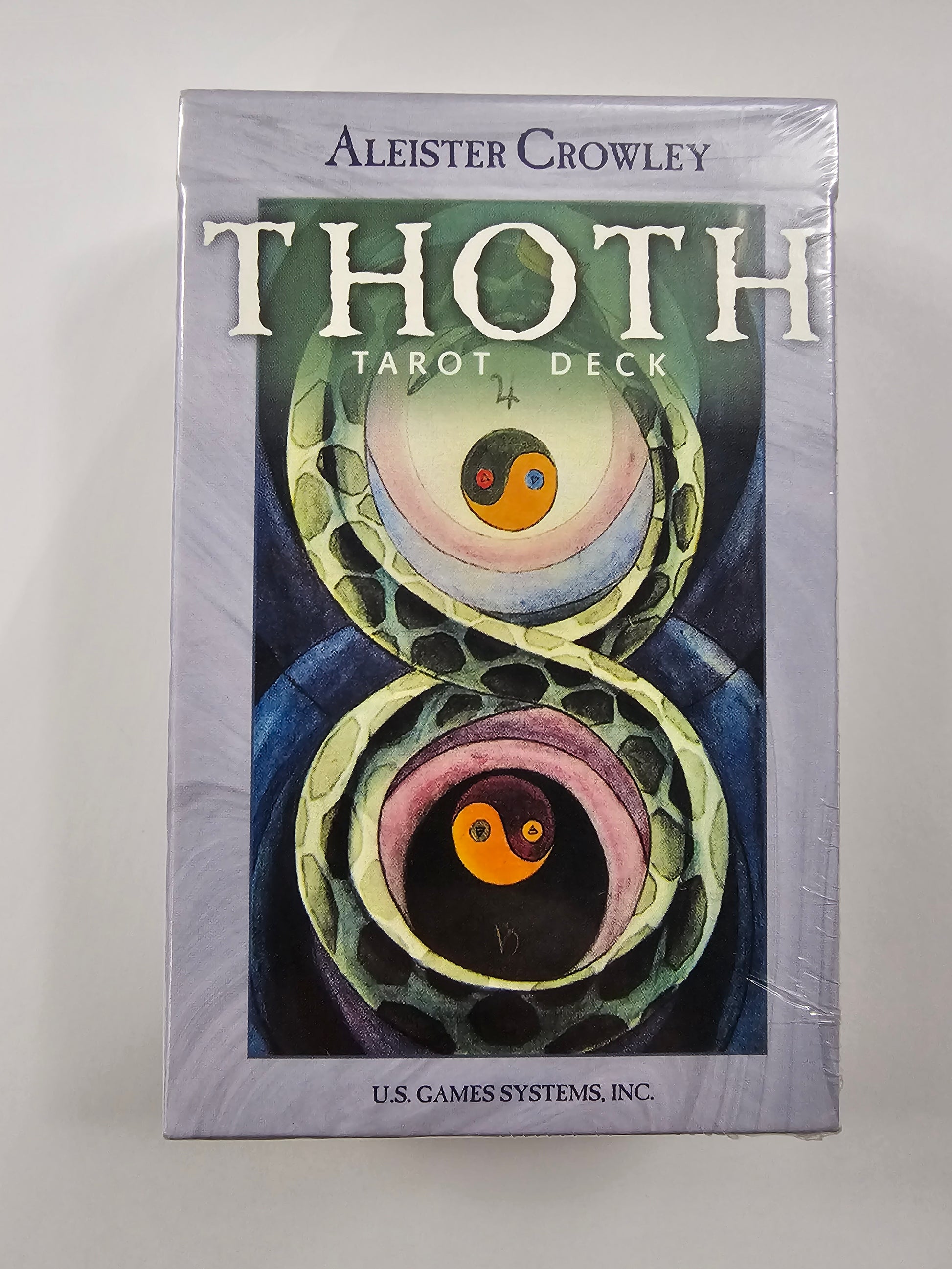 Crowley Thoth Tarot Deck Small features 78 cards painted by Lady Frieda Harris according to instructions from the occult scholar, Aleister Crowley, in a handy small size. The magnificent art deco work contains kabalistic and astrological attributions described in Aleister Crowley’s Book of Thoth. The art deco artwork of the Thoth is rich in Egyptian symbolism. To each of the twenty-two Major Trumps of the tarot is assigned, by tradition, a Hebrew letter and a path on the Tree of Life, as well as an astrological sign, element, or planet. The deck also reflects Crowley’s interest in alchemy and magic. The original Crowley Thoth Tarot has attracted a worldwide following, both for its striking beauty and for its complex depiction of occult knowledge. Since its initial publication in 1969, the deck has never been out of print. Included with the deck is a booklet of instruction, which contains two essays by Lady Frieda Harris and a commentary by Stuart R. Kaplan.